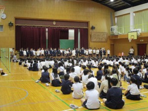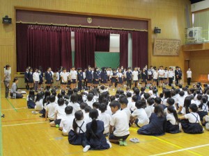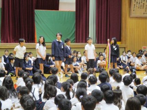 修学旅行で行うセレモニーを平和集会で見せてくれました。