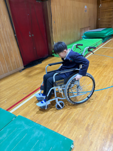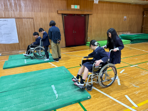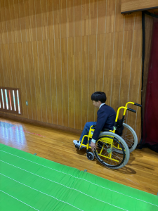 体育館で、車いす体験をしました。