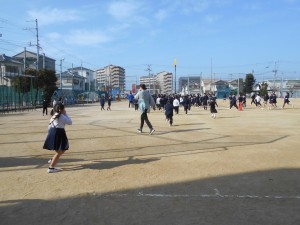 運動場では、落ち着いて話をしっかりと聞くことができました。