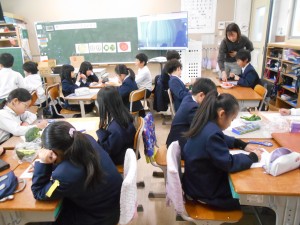 給食のときには、今日観察した野菜も出ていて、