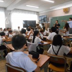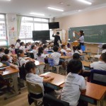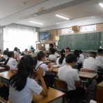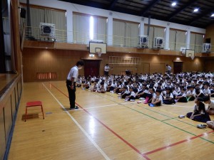 元気に校歌を歌い、校長先生や生活指導の先生のお話を