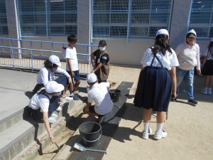 子どもたちと一緒に、運動場や中庭の環境をととのえてくれました。