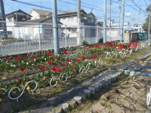 今、運動場の花壇のチューリップがとってもきれいです。
